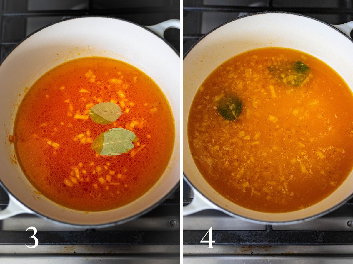- White or yellow onion and crushed garlic build the base flavors of this dish. A bay leaf is optional, but adds an extra layer of flavor.